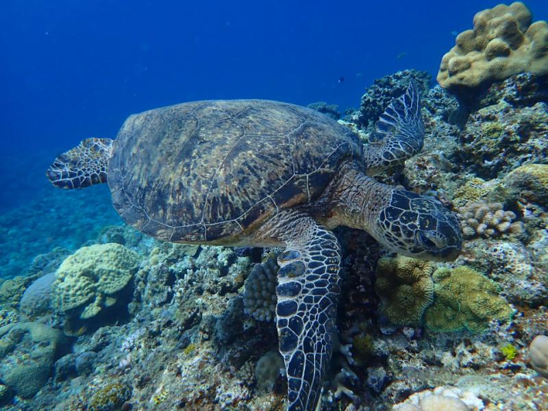 今回出会ったのはアオウミガメでした~~~(*´ロ`*)