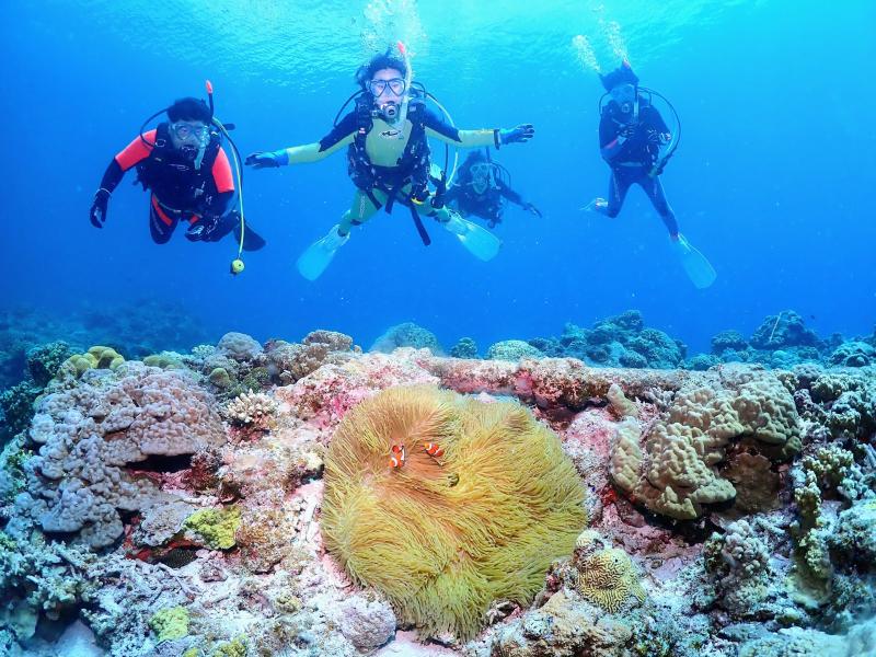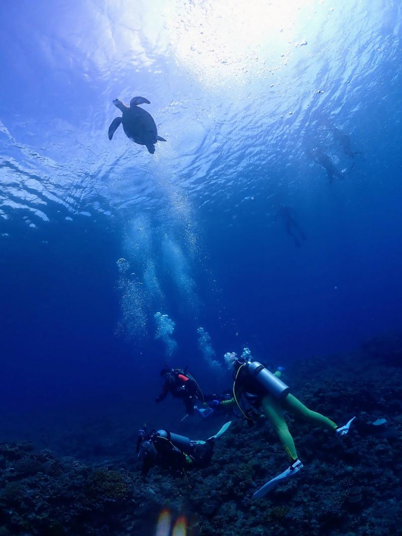 体験ダイビングは何回もやったことがあるそうですが、今回はダイバーになって初めて浮力を調整してふわふわ感を味わったのではないでしょうか。お二人ともとっても上手でしっかり講習を受けていた様子がうかがえました。