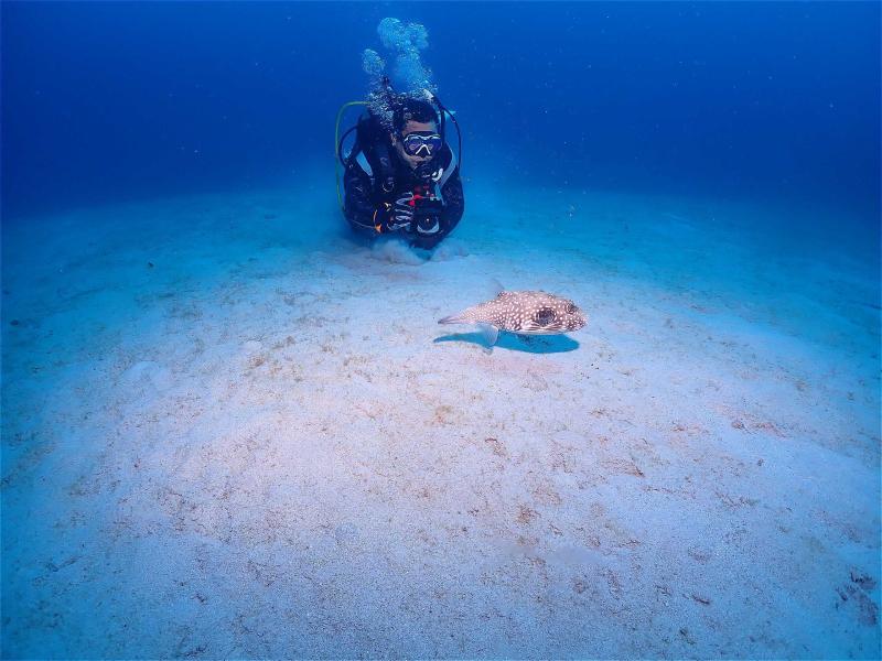 砂地ではサザナミフグが ”ぽてっと” 水底に。
