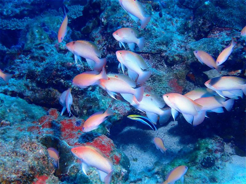 ハナダイの根ではケラマハナダイがクリーニング待ちでワラワラしてました。ホンソメワケベラも大忙しって感じですね。