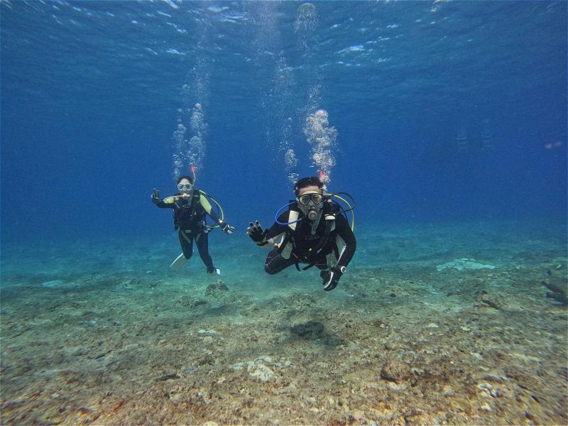 「さすが沖縄!」と言いたくなるような暖かさの中、OWD(オープン・ウォーター・ダイバー)講習の続きを行っていますよ!