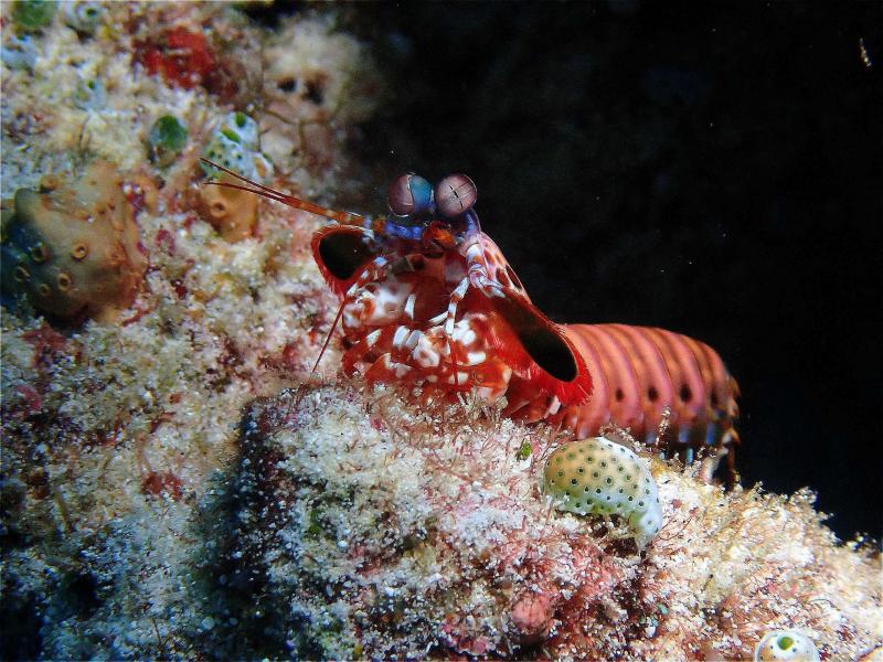 じっくり水底を散策しているとモンハナシャコに会えました。